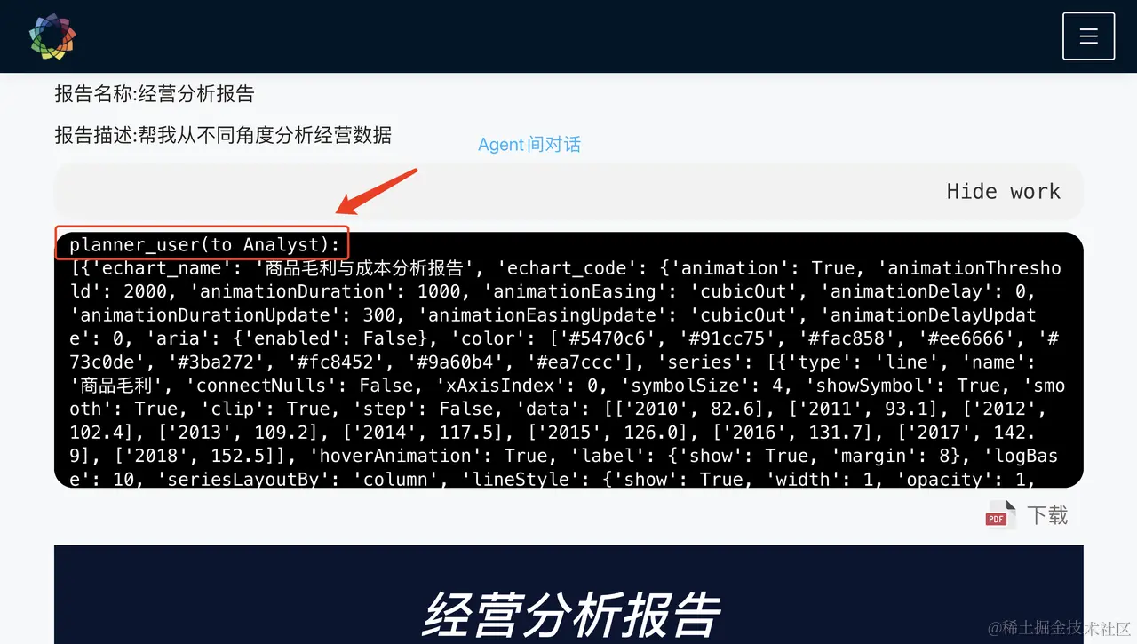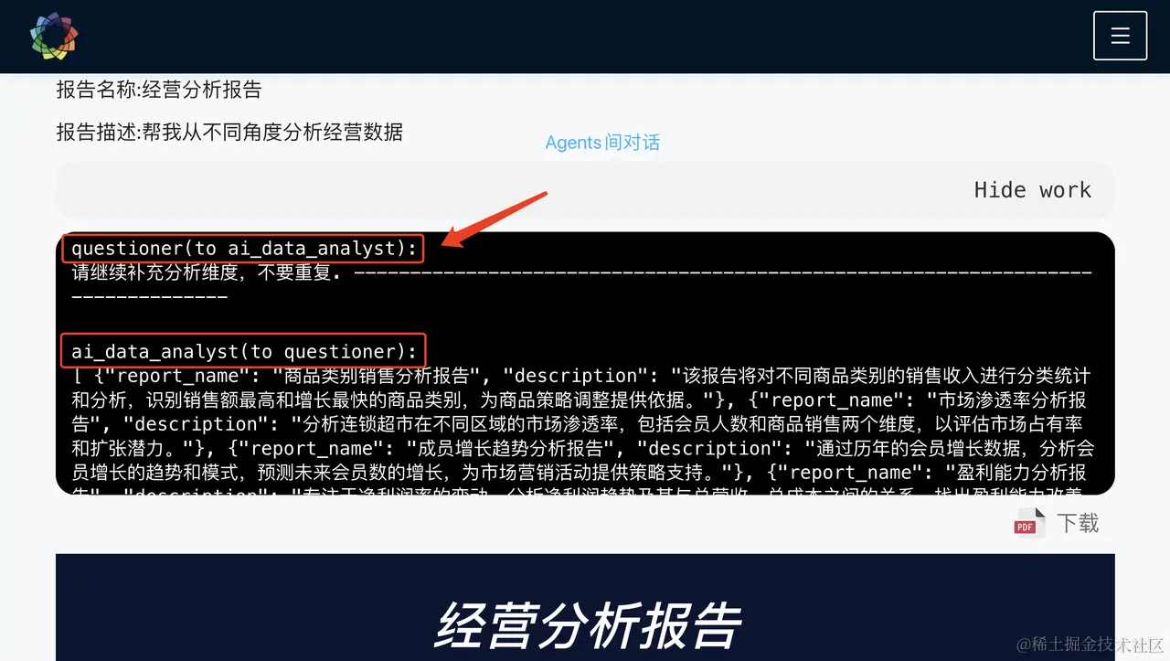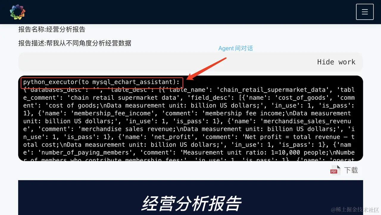 我们就以一句话生成经营分析报告为例,我们具体看看AI智能体们到底是如何工作的