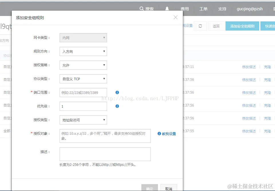 (2)选择配置规则--》添加安全规则,例如: