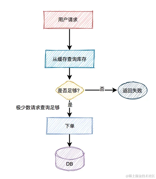 在秒杀的过程中,系统一般会先查一下库存是否足够,如果足够才允许下单,写数据库。如果不够,则直接返回该商品已经抢完。