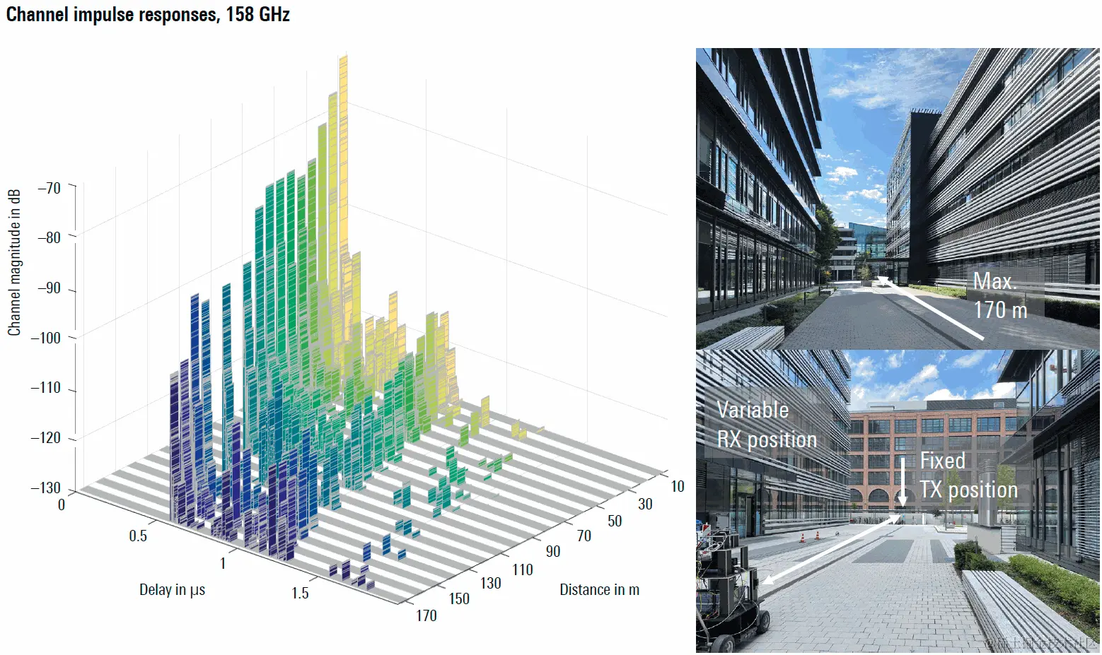 第六章 描述了信道传播测量的概念,并介绍了在慕尼黑罗德与施瓦茨总部进行 158GHz 和 300GHz 信道测试的一些初步结果。