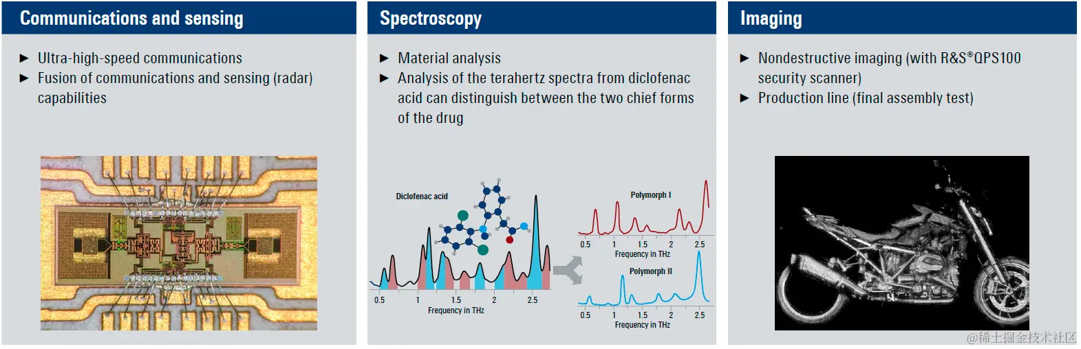 图3:太赫兹波在通信和感知、光谱学和成像中的应用