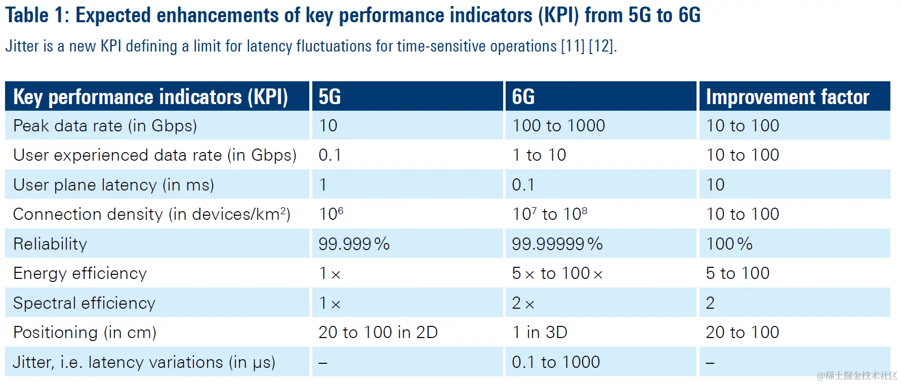 虽然未来的 6G 应用场景仍需定义,与 5G 相比很显然,在 数据速率、延迟、频谱效率、安全性、可靠性 和 能耗 等方面的性能要求将更加苛刻。这也将影响 处理架构:信息技术和通信技术将进一步融合,即大量的数据处理将在分布式网络系统中进行,而不一定在最终的用户设备中进行。这将导致具有挑战性的数据速率和延迟要求。计算能力可以脱离到与设备分离的云或边缘网络(从而降低终端成本)。