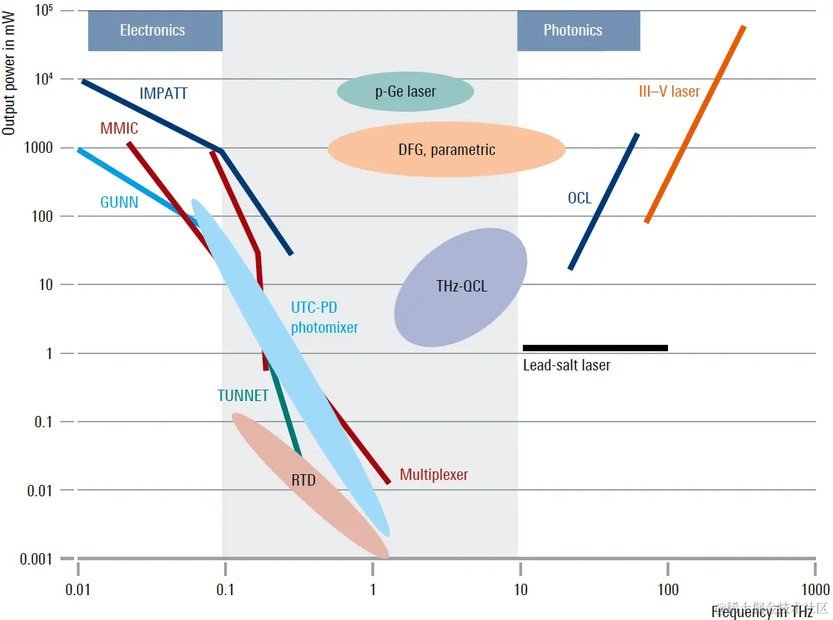 凭借其既定的生产工艺和高水平的集成,通过电子产生太赫兹仍然是目前的主要技术。频率限制正不断得到突破。