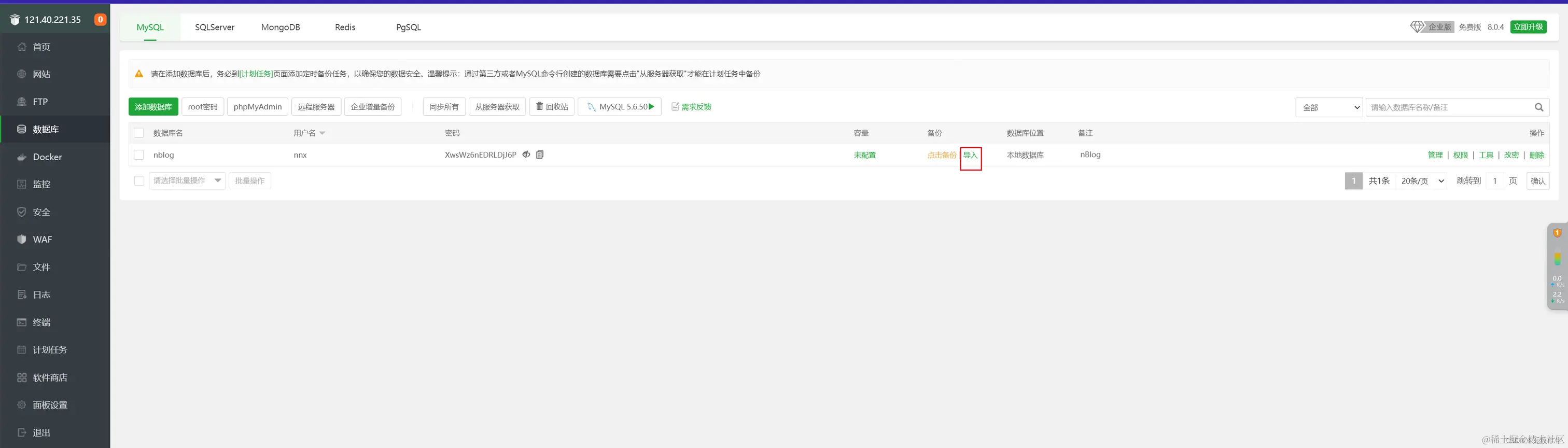 4.宝塔数据库相关