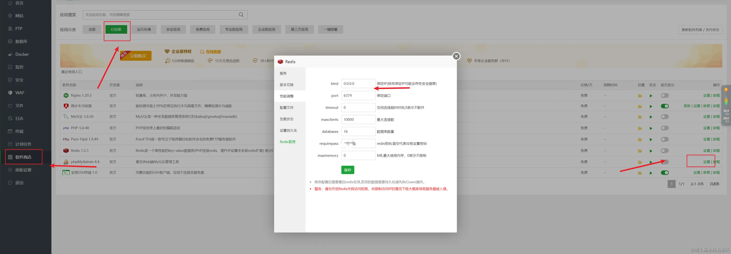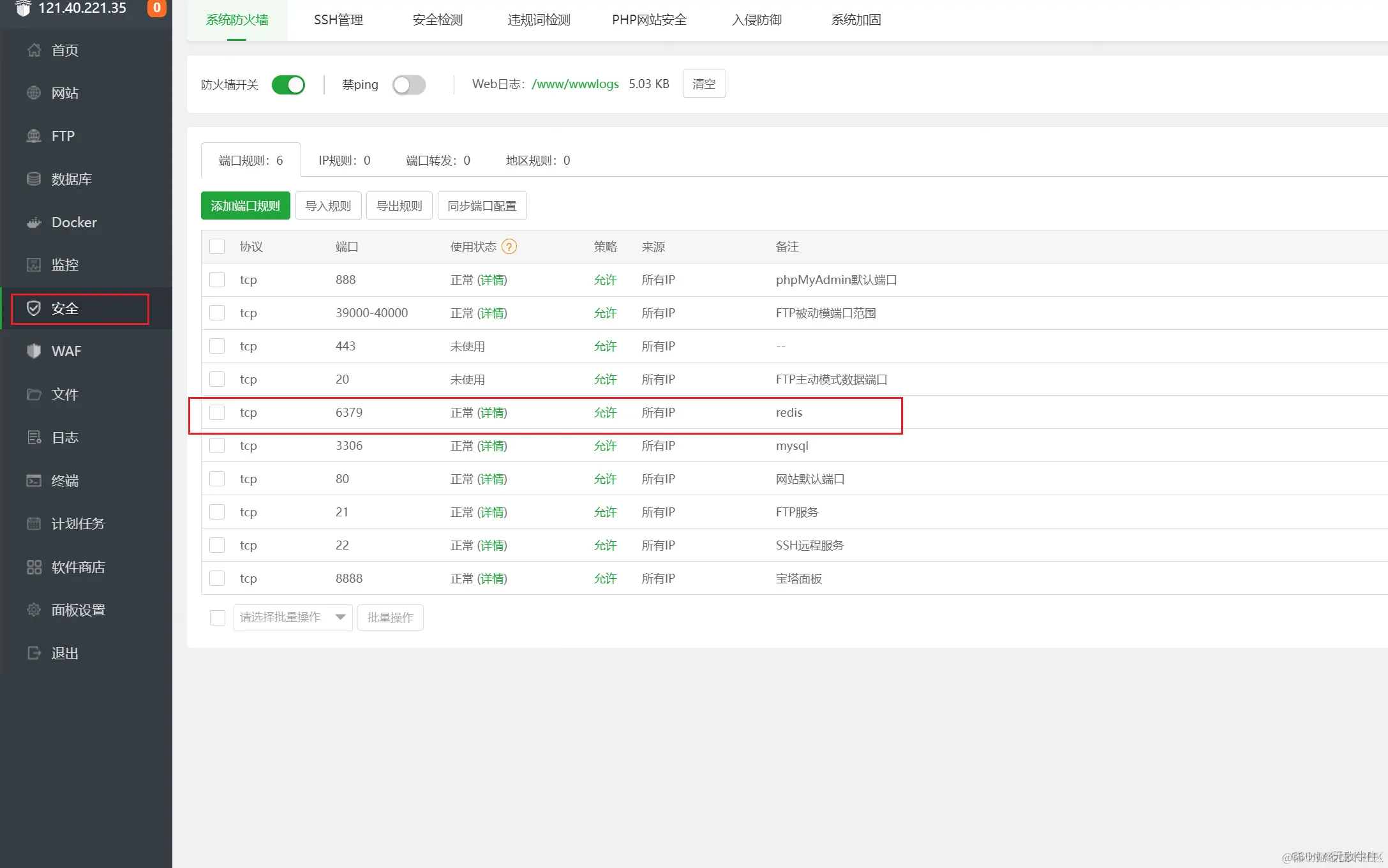 放开6379端口