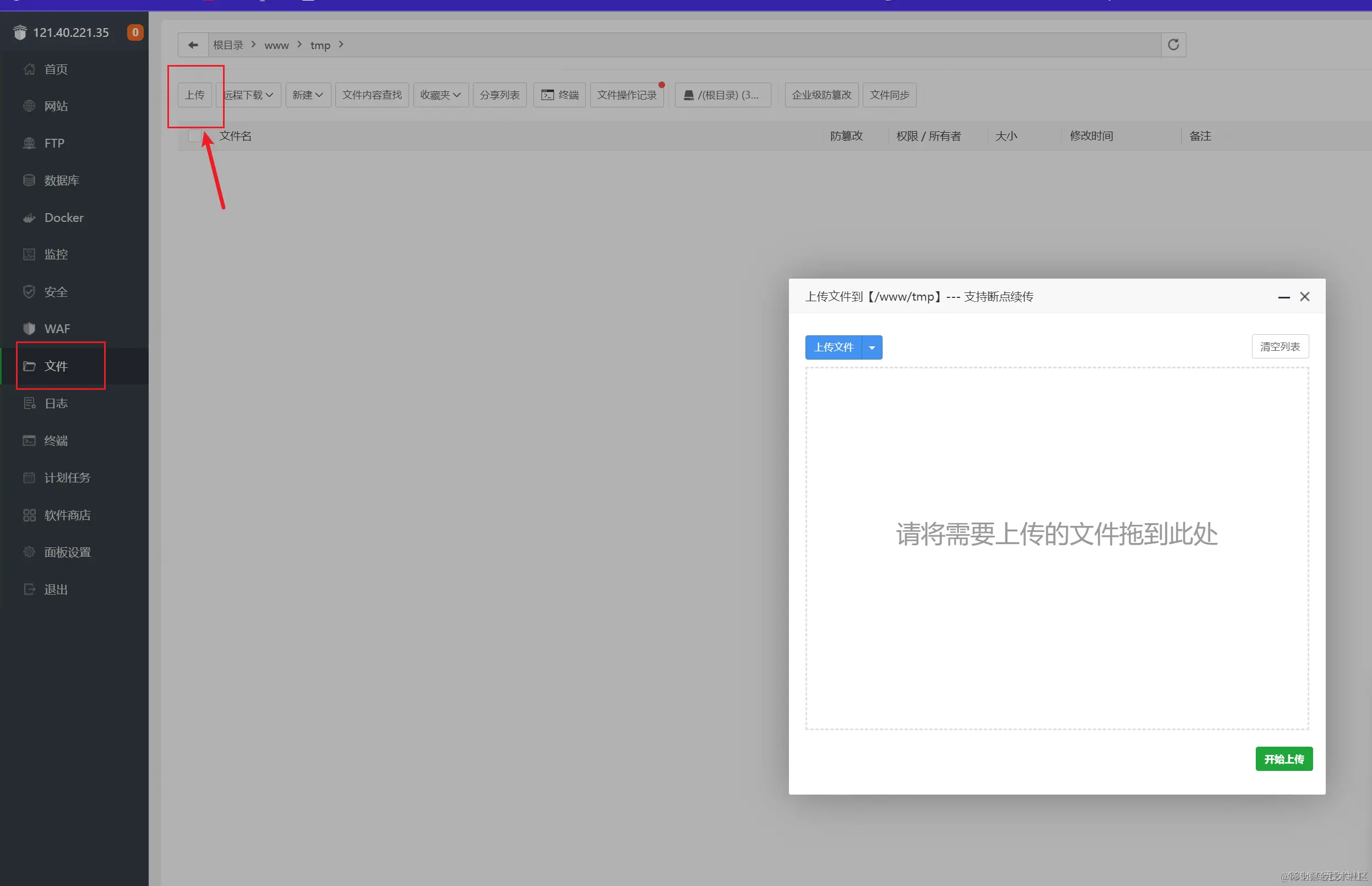 2.将dist文件夹上传到宝塔