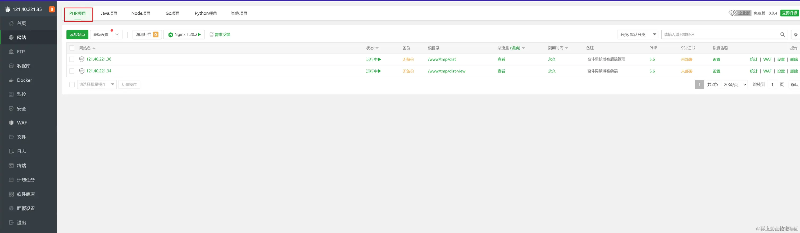 3.php项目页面新增站点