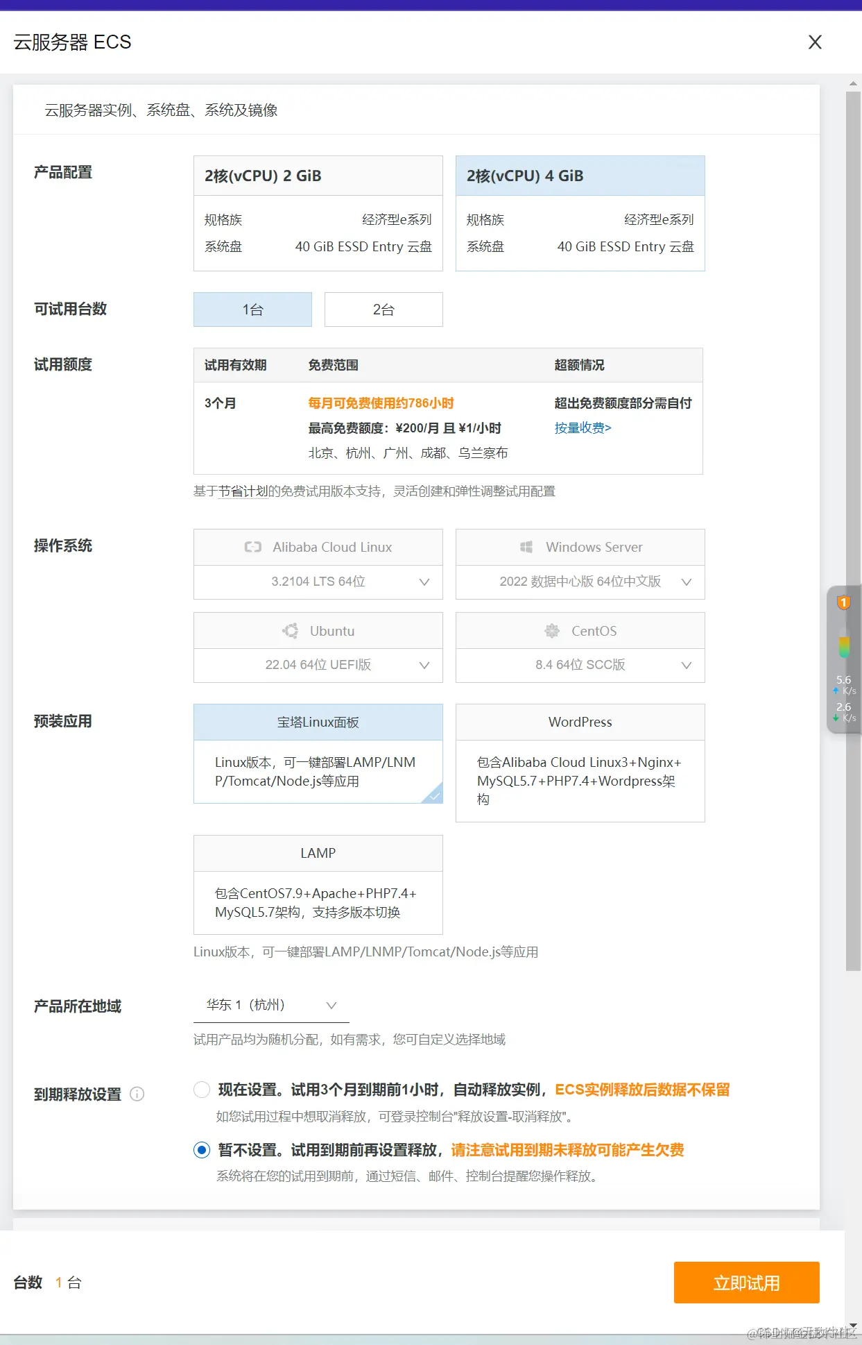 1.购买服务器(试用白嫖)