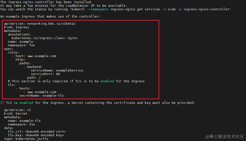 如果使用旧版本的 Kubernetes(1.18 或更早版本),则必须使用 Ingress-Nginx Controller 的 0.X 版本(例如 0.49 版本