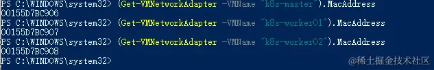 (Get-VMNetworkAdapter -VMName "k8s-master").MacAddress