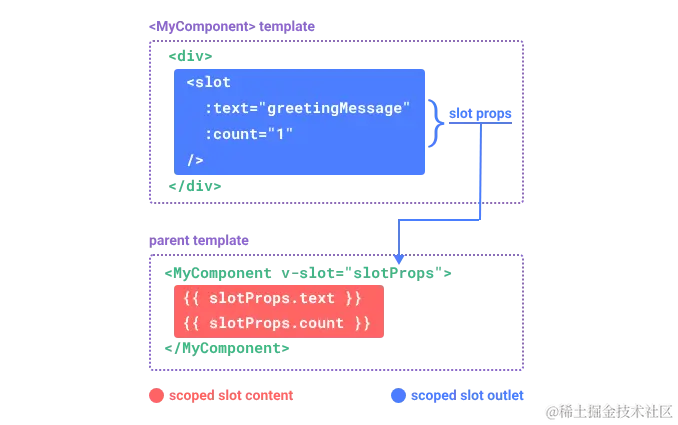 传出语法:<slot :propKey1="propValue1" :propKey2="propValue2" ... />