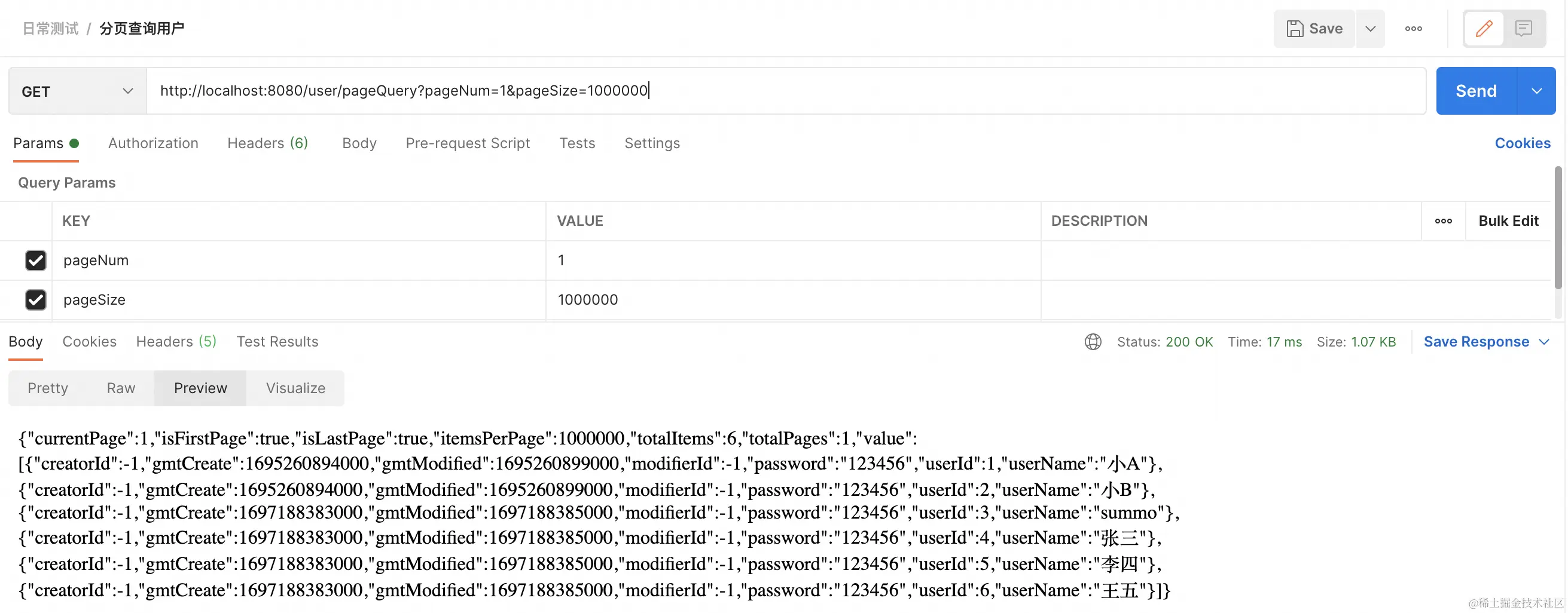 其实上面那些问题对于后端来讲很合理,页码和页大小设置不正确查询不出来值难道不合理吗?唯一的问题就是如果一次性查询太多条数据服务器压力确实大,但如果是产品要求的那也没办法呀!真正让我不得不解决这个问题的原因是前端的一个BUG,这个BUG是啥样的呢?我来给大家描述一下。