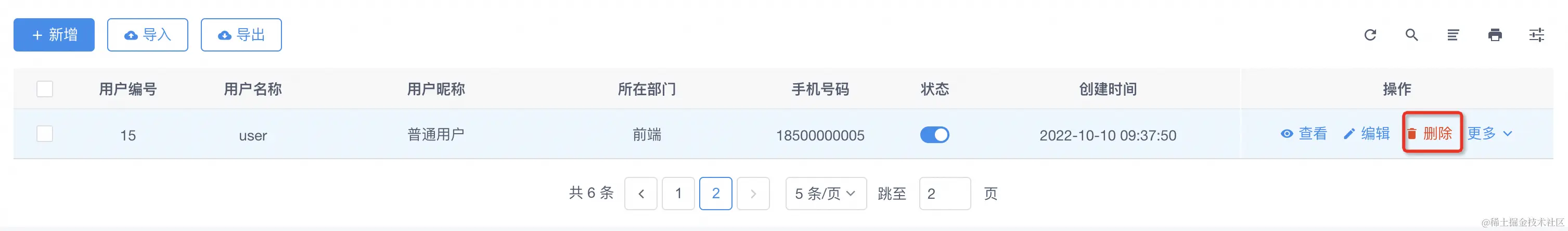 那么,现在我问一个问题:我们切换到第二页,把第二页仅剩的一条数据给删除掉,会出现什么情况?