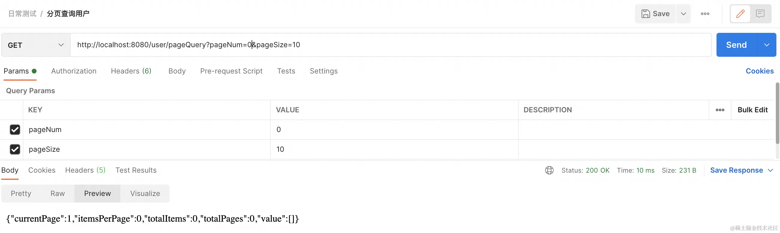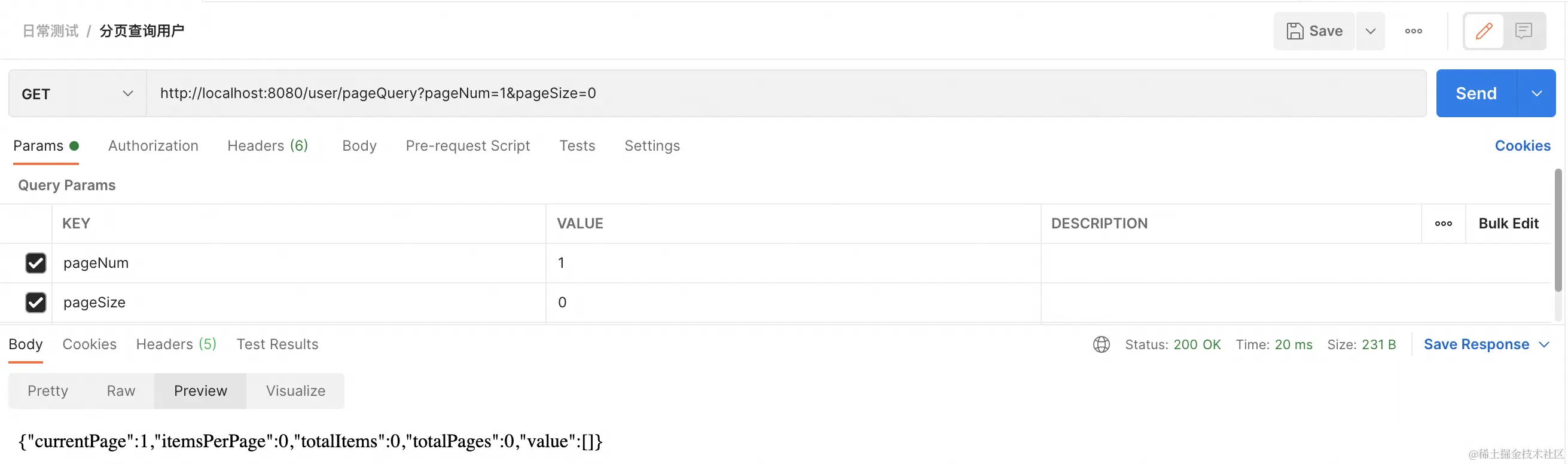 1. 用户切换到第二页,前端发起了请求,如:http://localhost:8080/user/pageQuery?pageNum=2&pageSize=5 ,此时第2页有一条数据;