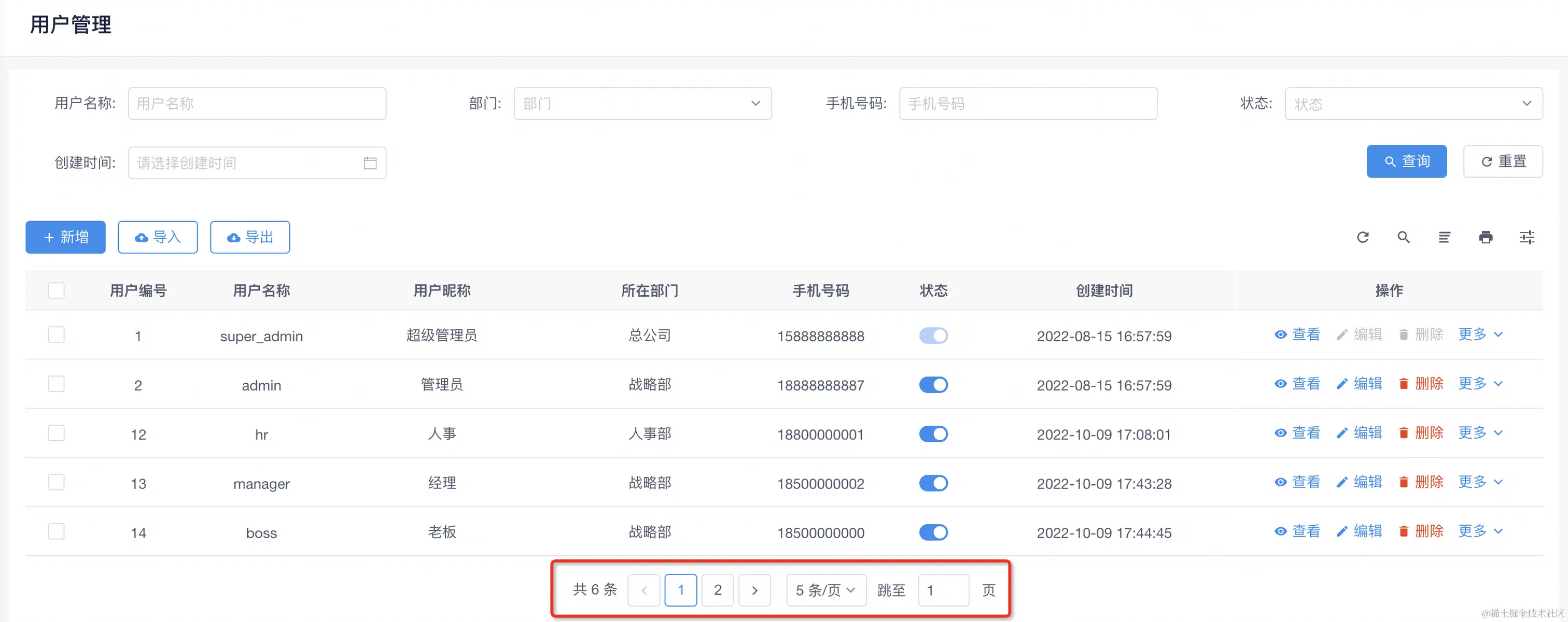 前端的这个分页组件大家应该很常见,它需要两个参数:总行数、每页行数。比如说现在总条数是6条,每页展示5条,那么会有2页,没啥问题对吧。