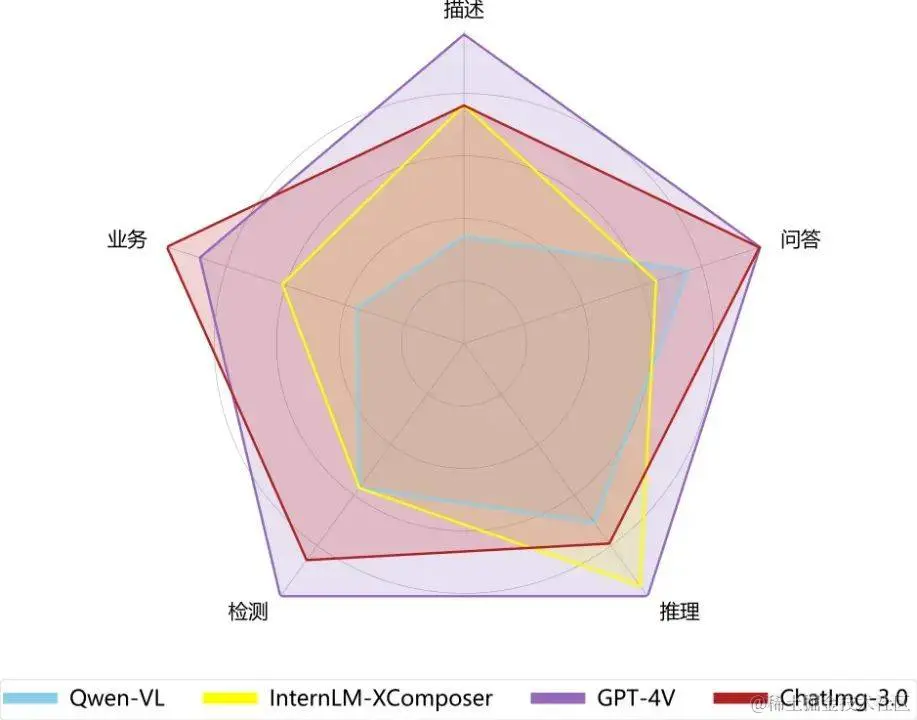 10月28日举办的CNCC 2023“超智融合AI大模型应用落地发展论坛”上,元乘象Chatimg3.0正式发布,相比2.0版本进行了两方面的升级,包括第一阶段的预训练(描述、检测、OCR 等多任务训练)和第二阶段的指令微调(高质量的人工精筛指令集),并在问答和业务两个方面的能力上赶超GPT-4V。