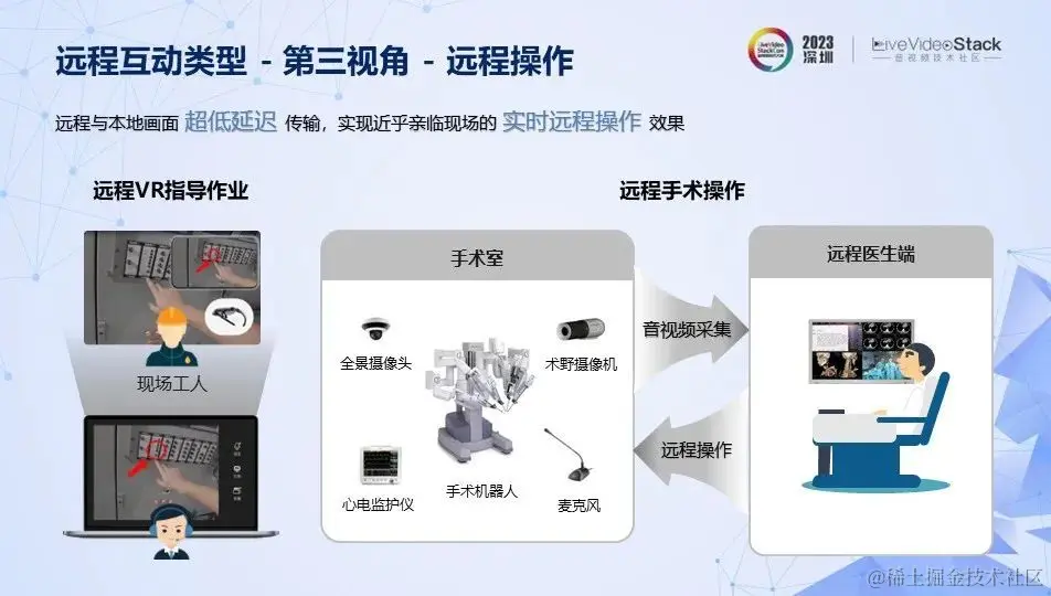 例如在电网检修时,技术人员可以远程指挥非专业者进行维护作业。或在医疗场景下,医生异地操作机器人远程手术、通过护士携带的摄像设备远程问诊等等。可以看到,低延时技术的应用已对传统工作方式造成了很大影响。