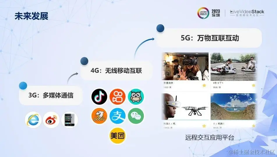 到了如今的5G时代,相信在电池、屏幕、5G通信和AI技术的加持下,我们终将迎来万物互联互动,新的物联网生态能够支持万物的标签化,从而实现互联,并且延迟足够低、建连时间短。不难看出,远程互动通信和低延时技术必将是其中的关键。