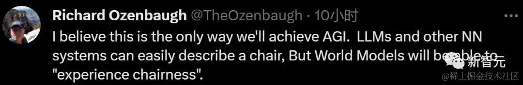 甚至认为这是实现AGI的唯一途径:LLM和其他神经网络系统可以很容易地描述一把椅子,但世界模特将能够「体验椅子」。