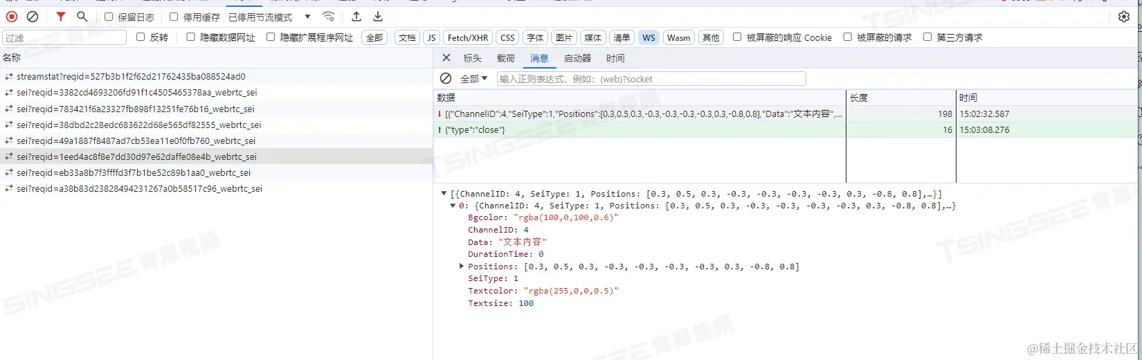 1)后端收到设置sei接口时,通过websocket发送sei消息: