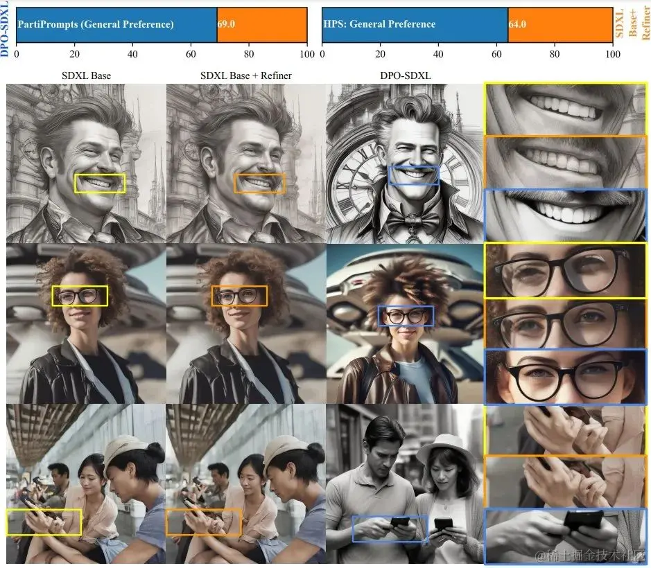 Diffusion-DPO方法基于直接偏好优化(Direct Preference Optimization)技术,这是一种相对于传统的基于人类反馈的强化学习(RLHF)的简化替代方案。它可以直接优化模型在分类目标下最能满足人类偏好的策略。通过这种方法,研究团队对图像生成模型进行了重大调整,以便更好地适应和反映人类偏好。