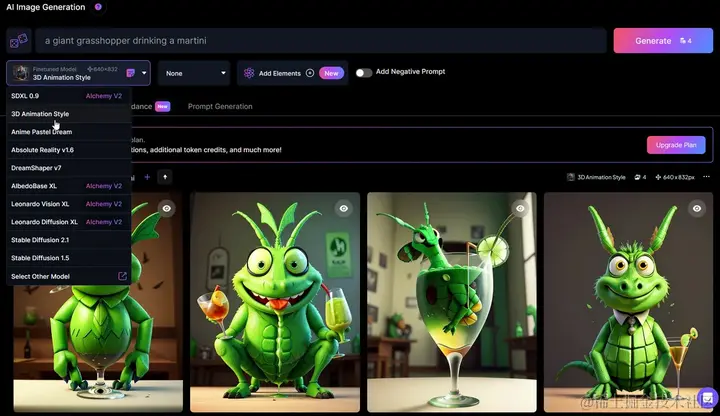 接下来,您可以选择特定的型号。单击 Leonardo Diffusion XL 的下拉菜单并将其更改为其他型号。有些模型名称是自我描述的,例如 3D 动画风格和 Anime Pastel Dream。但您可能需要尝试大多数其他模型才能查看生成的图像类型。