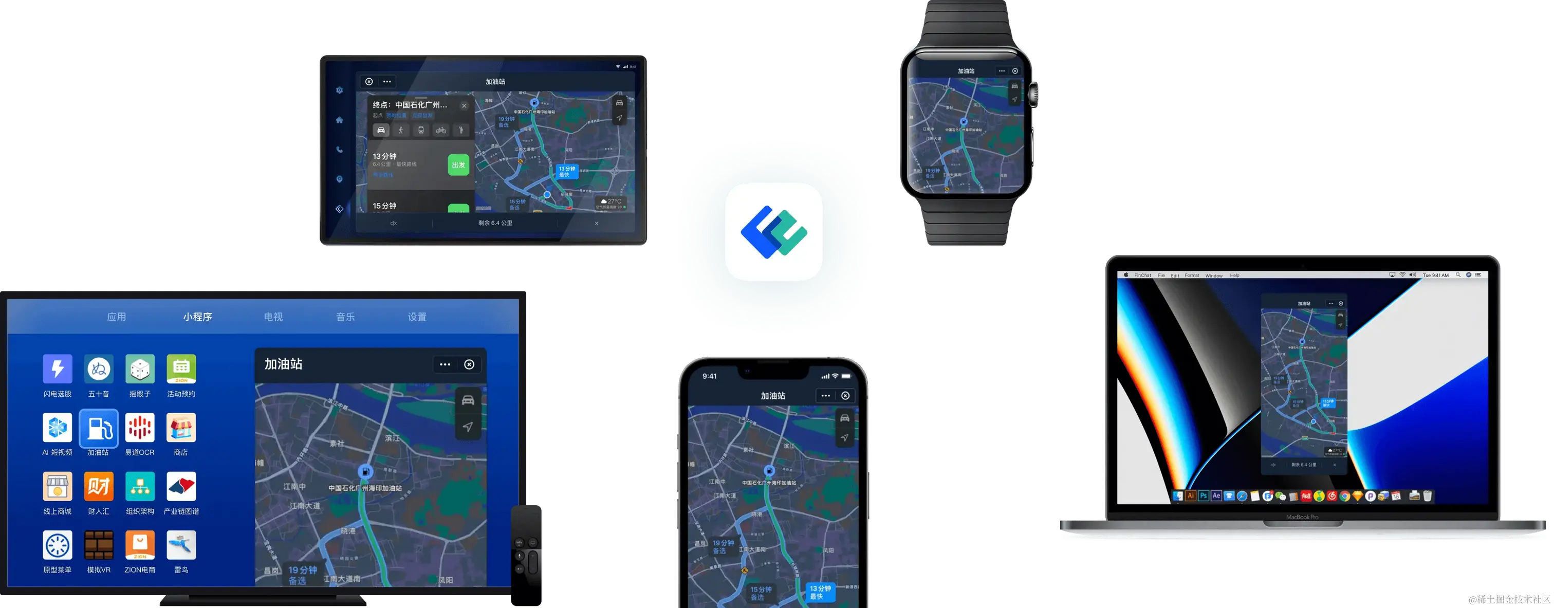 FinClip的目标也不仅是移动端,而是任意屏幕设备,不论是移动 App,还是电脑、电视、车载主机等设备,在集成 FinClip SDK 之后,都能快速获得运行小程序的能力。助力企业构建IoT云端一体化生态