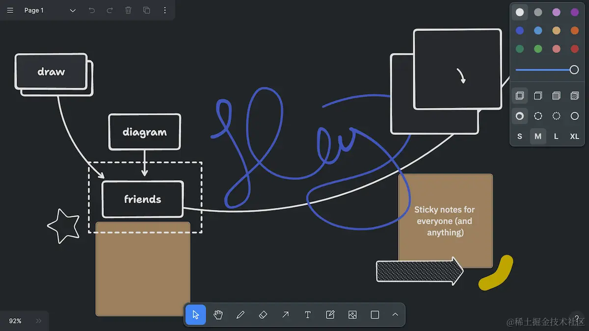 tldraw 是一个可协作的数字白板工具,通过 tldraw.com 可以体验其功能。