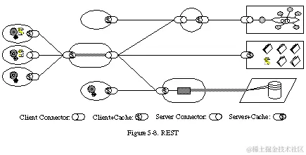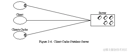 为了提高网络效率,我们增加了缓存约束,形成了3.4.4节中的client-cache-stateless-server风格(图5-4)。缓存约束要求对请求的响应中的数据隐式或显式地标记为可缓存或不可缓存。如果一个响应是可缓存的,那么客户端缓存就有权为以后的等价请求重用该响应数据。