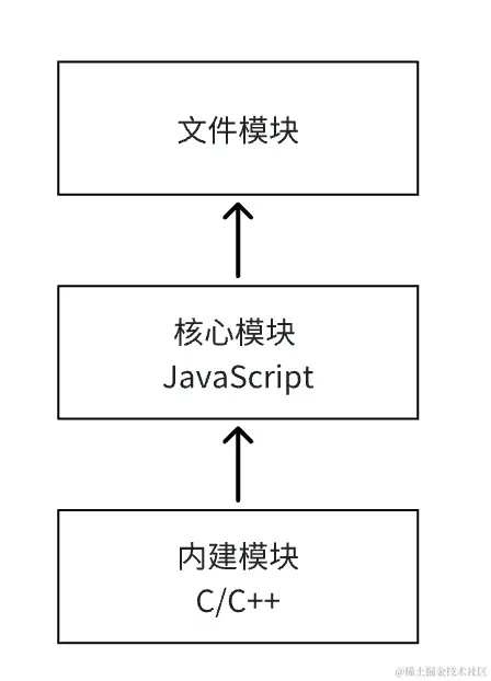 文件模块由第三方编写,包括普通的JavaScript模块和C/C++扩展模块,主要调用方向为普通JavaScript模块调用扩展模块。