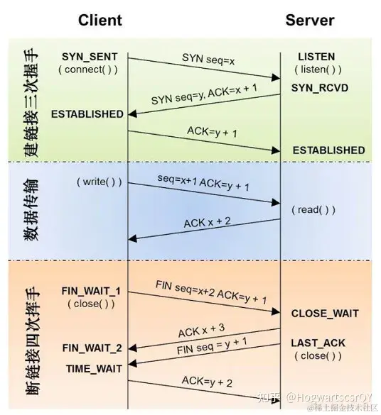 - 客户端接受到ACK报文后也向服务端发送ACK报文,并分配资源