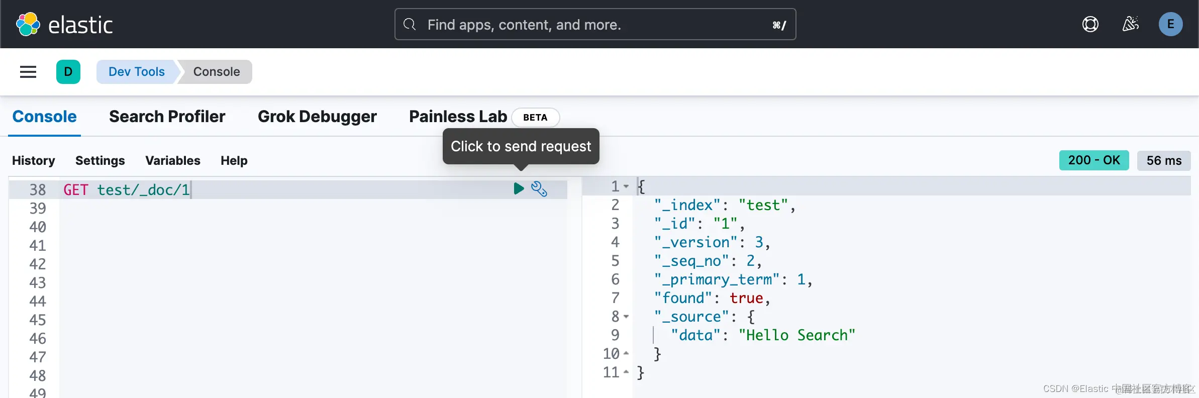 4. "data": "Hello Elastic"