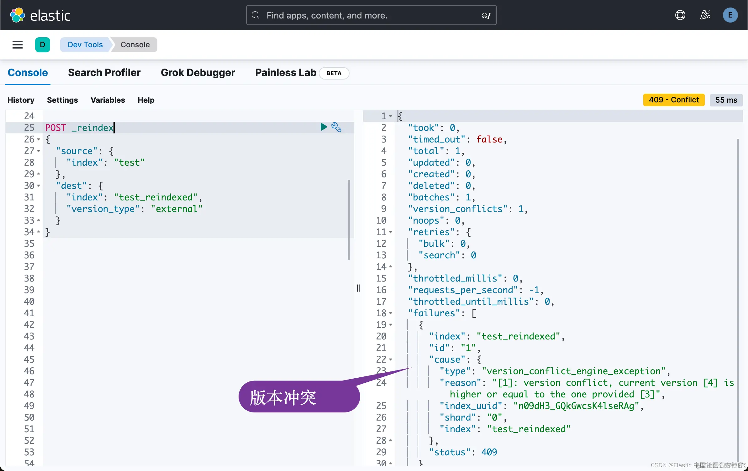 默认情况下,_reindex 是内部的,这种数据迁移是通过使用原始索引覆盖新索引来完成的,并删除文档的 _version,因此新索引中的所有文档重新开始。