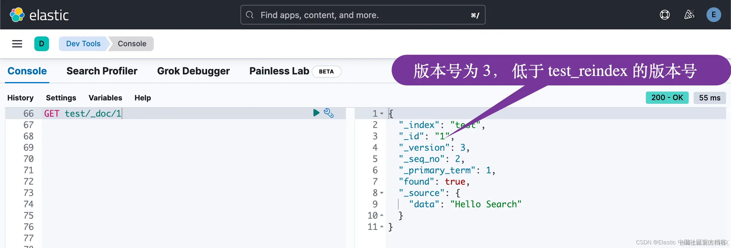 重做 _reindex 将发现 3 > 3,因此它将被 Hello Search 覆盖。