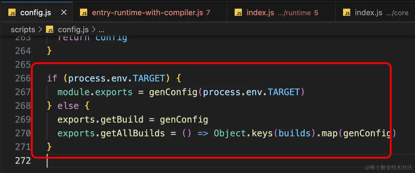 - 现在进入到 scripts/config.js 文件,看代码最后(一般导出的代码是放在最后);