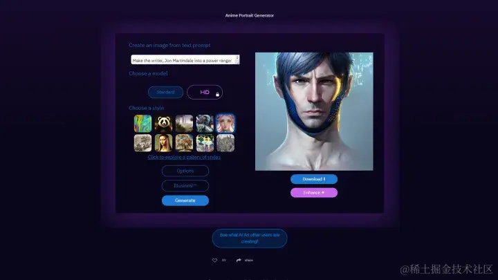 您甚至不需要注册即可使用DeepAI。只需导航到主页,点击 图像 按钮,然后弹出提示。选择一种样式,然后这个 AI 生成器将在不到 20 秒的时间内生成一个看起来不错的图像。您需要为更多高级功能付费,但对于一个快速而简单的人工智能艺术工具来说,它可以完成工作。