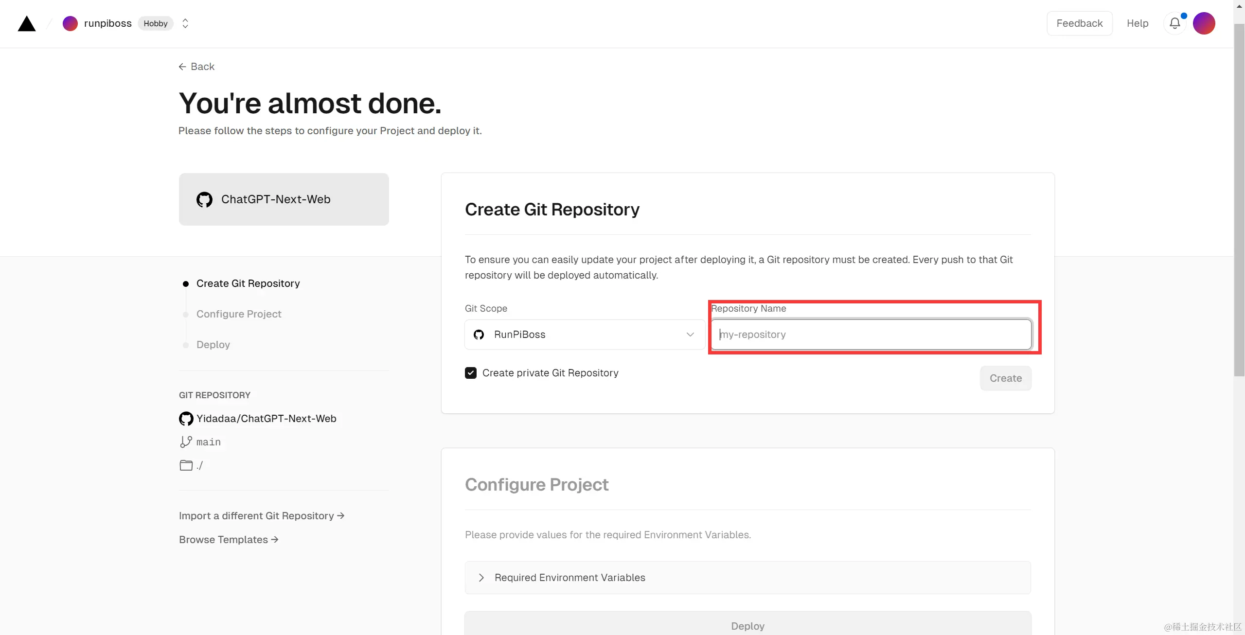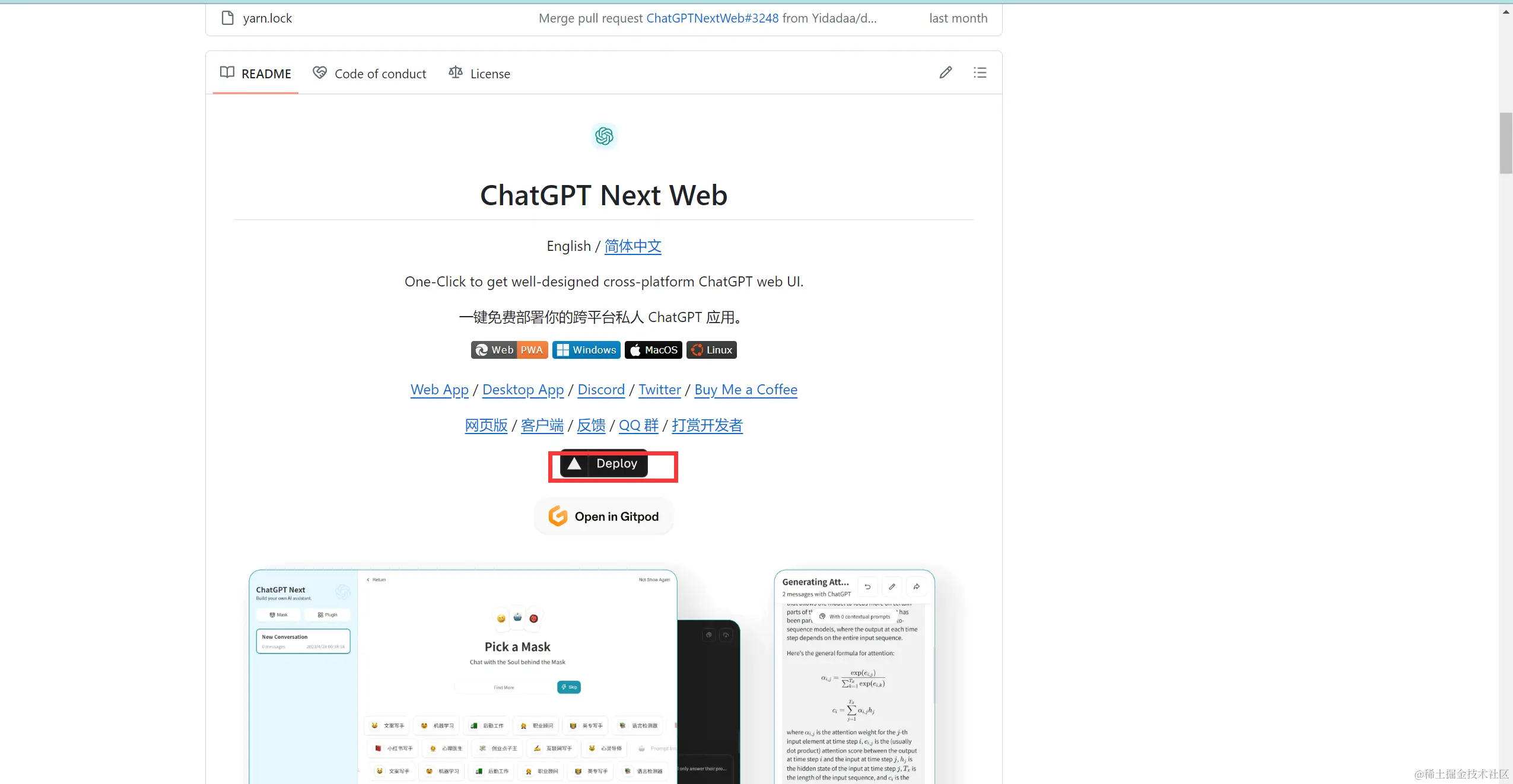 第一步:打开github中的开源项目,点击Deploy