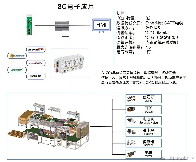 随着3C电子行业的快速发展,分布式I/O在3C应用中有着不可缺少的一环,比如通过分布式I/O,可以实现对3C电子产品生产线上的各种设备的控制和监测,如SMT贴片机、焊接机、测试机等。分布式IO在3C电子领域的应用主要体现在自动化生产和测试上,分布式IO可以与各种传感器、执行器和测试设备相连接,实现自动化生产和测试。