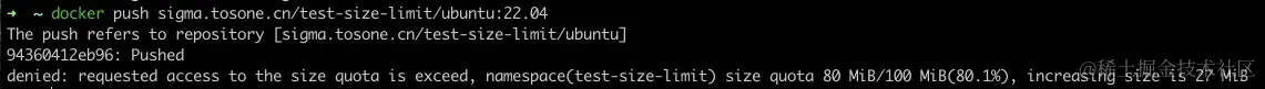 目前 sigma 支持在镜像推送达到存储容量或者 tag 容量上限的时候,在客户端给出相应的提示信息。