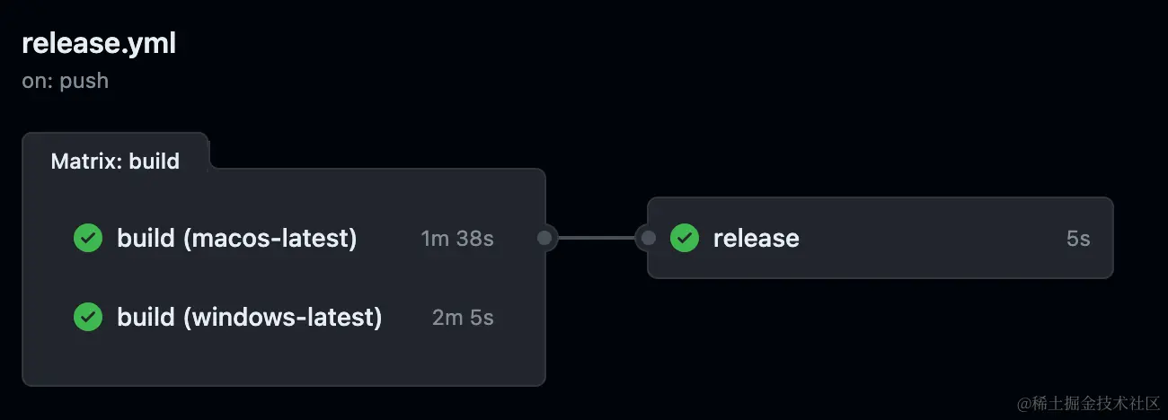 为了提高打包的效率,我们可以使用 GitHub Actions 自动化的方式来进行打包和发布。首先在 github/workflows 目录创建文件 release.yml,下面是对这个流程文件关键要点的解析。