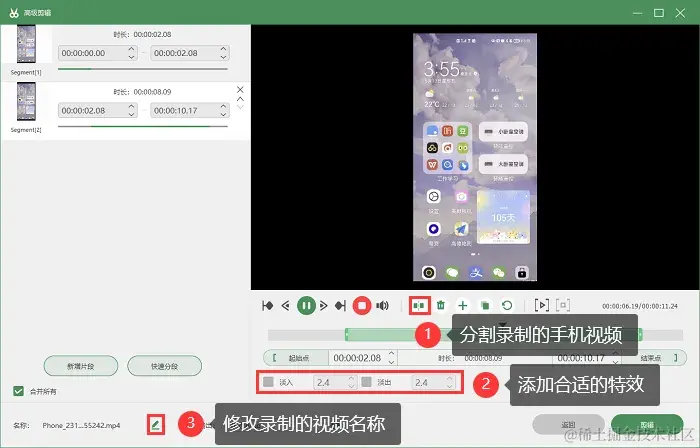 它可以自由设置手机录屏参数,包括视频分辨率、视频帧率等,软件自带多媒体处理功能,可以对录制的文件进行转换、压缩、合并等操作。下面是录制安卓手机的操作步骤: