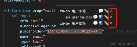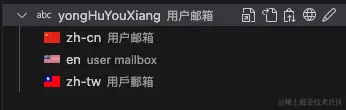 看下插件的tree操作区域,这里可以看到词条的信息以及对应的翻译文案,比如我们上面操作的【用户邮箱】