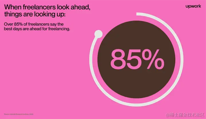 - 根据自由职业者的说法,未来是光明的:超过85%的自由职业者表示,自由职业的最佳日子即将到来。