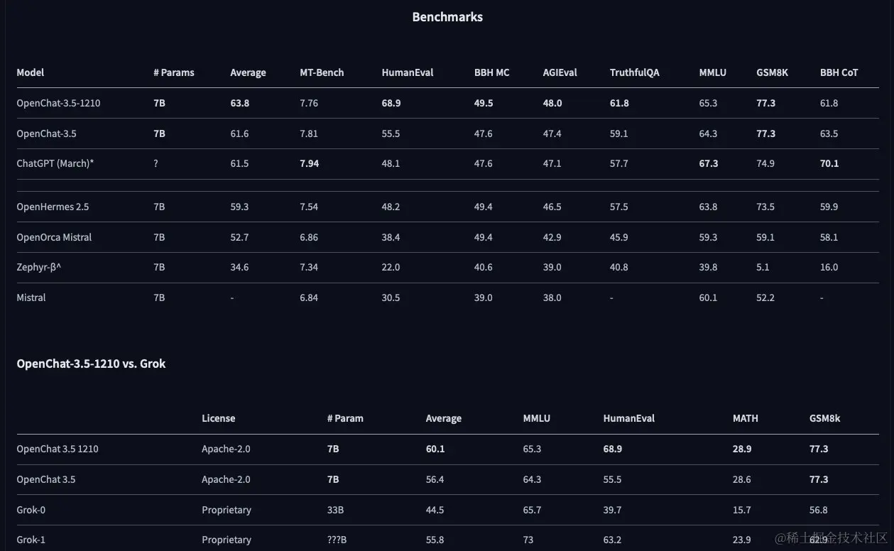- 全面的知识面:在多个基准测试中,如MMLU、TruthfulQA和AGIEval上,OpenChat-3.5展现了其真正的通用性。