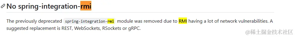 真相大白。在 6.x 版本 Spring 不再提供 rmi 相关支持,因为 RMI 存在太多的网络安全漏洞。
