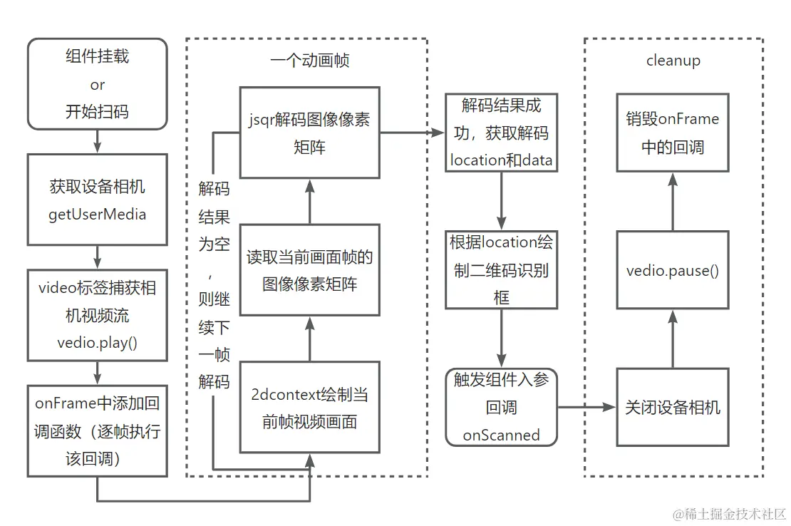 - 实践得出:jsqr 解析 qr 时长和图像分辨率有关,分辨率高则越快,因此需保证 canvas 绘制图像时在不产生数据冗余的情况下分辨率尽可能高(即确保canvas和视频画面的宽高一致)
