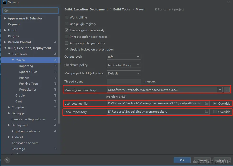 •Maven home directory --> 设置maven安装包的bin文件夹所在的位置