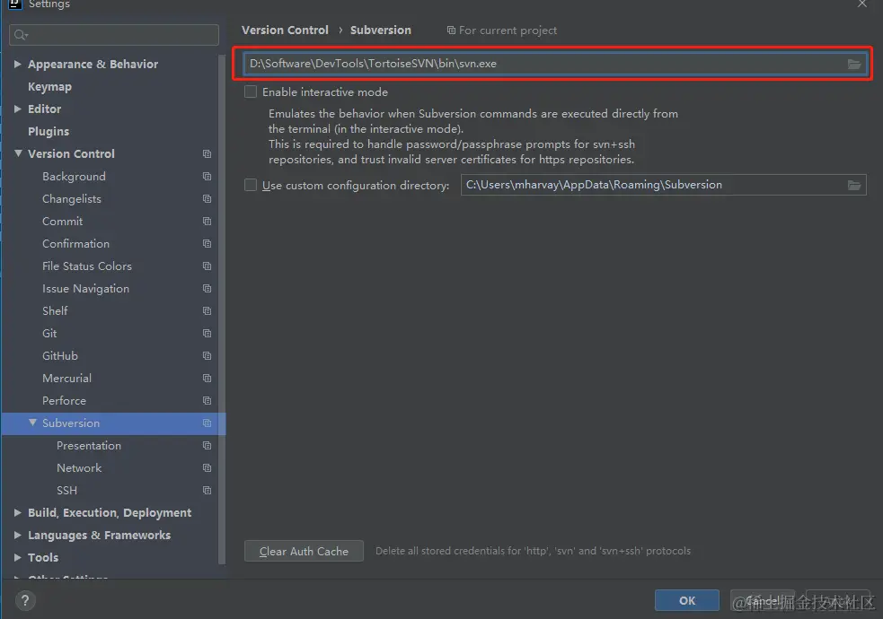 •右侧选择svn客户端安装路径bin目录下的svn.exe