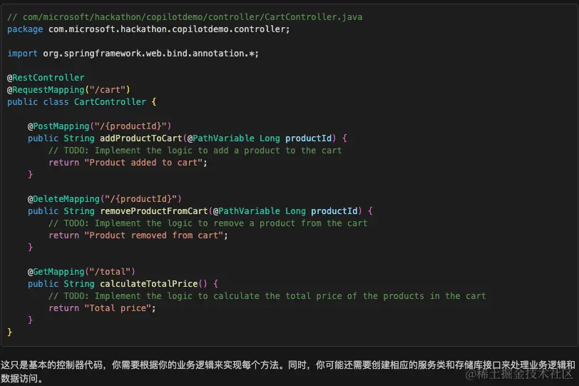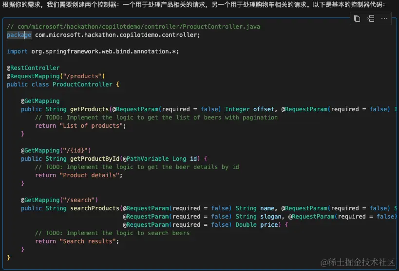 这一步,我们让 Copilot 帮我们完善具体的方法内容。