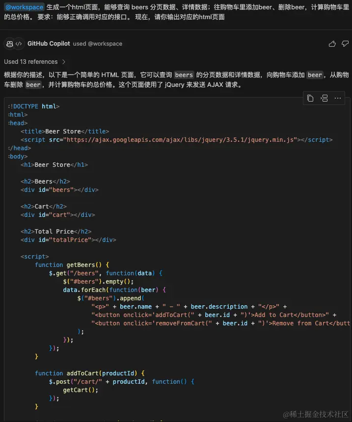 虽然阿七是一个后端工程师,不会前端代码,但是无所谓,Copilot 什么语言都会。
